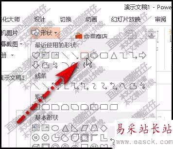 1、首先,我們點(diǎn)開插入選項卡,從中選擇矩形形狀。