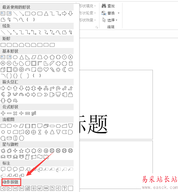 2、點擊繪圖選項內的其他選項,然后在它的下拉菜單里找到動作按鈕,如圖所示:
