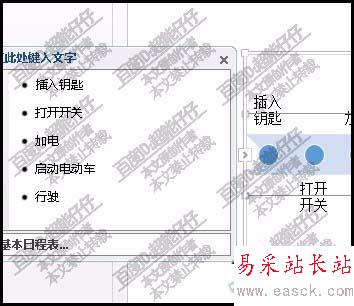 2、在文本框內輸入多行文字。比如,插入鑰匙;打開開關;加電;啟動電動車;行駛