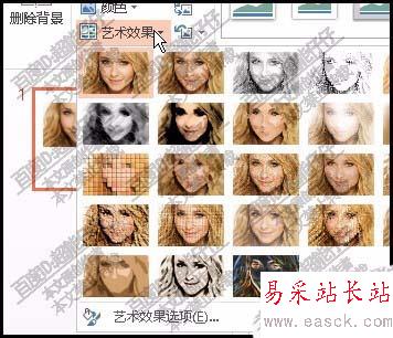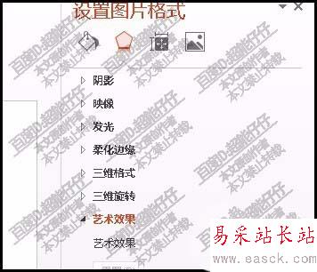 2、再看上面的菜單欄,點(diǎn)開:格式;再點(diǎn):藝術(shù)效果,這里。