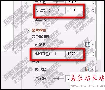 6、對(duì)比度這里為0;而在圖片顏色這里的飽和度是100