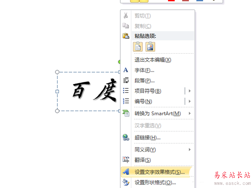 3、選擇文字內容,右鍵單擊從下拉菜單中選擇設置文字效果格式選項。