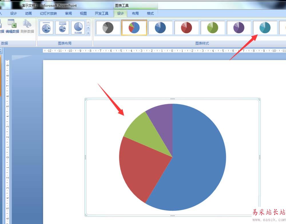 4、像下圖顯示的,只有一個餅圖,然后可以更改餅圖的樣式,換個顏色。
