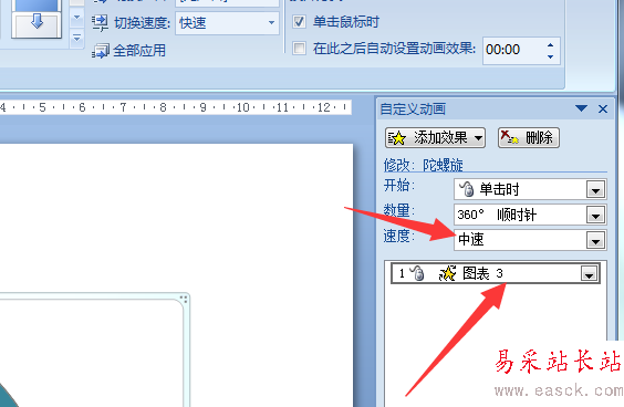 8、接著把旋轉的速度改成【非常快】,然后雙擊動畫效果-圖表3。