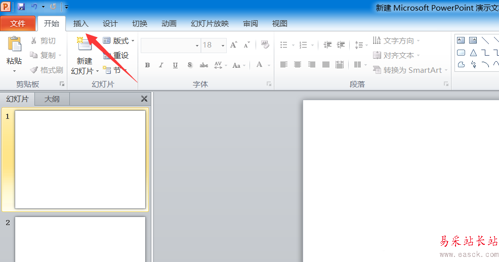 1、首先我們打開PPT后,點擊上方的插入菜單,如圖所示