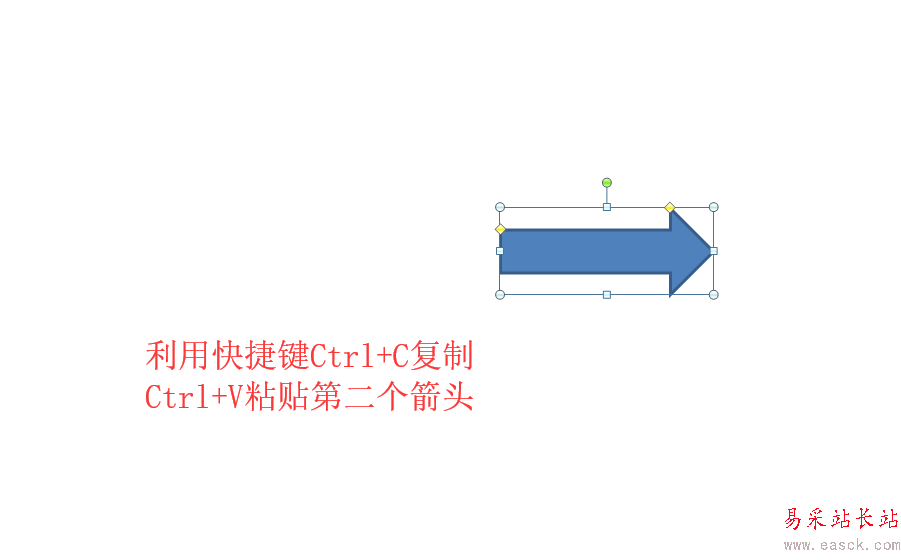 4、繪制好第一個箭頭后,我們利用快捷鍵Ctrl+C復制和Ctrl+V粘貼第二個箭頭,如下圖所示