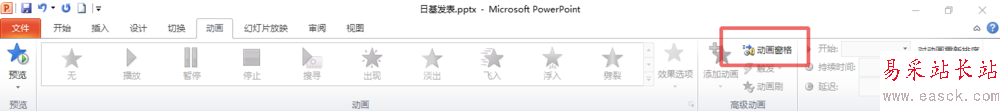 5、再點(diǎn)擊“動(dòng)畫窗格”,我們就能在動(dòng)畫窗格中找到那個(gè)音樂文件了。