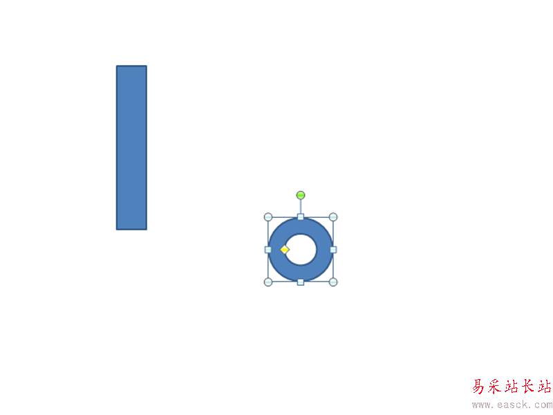 1、首先啟動ppt2010,執行插入-形狀命令,分別插入一個細長矩形和同心圓。