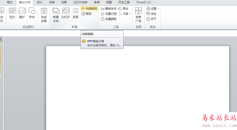 1、首先啟動ppt2010,執行美化大師菜單,從中選擇內容規劃選項。