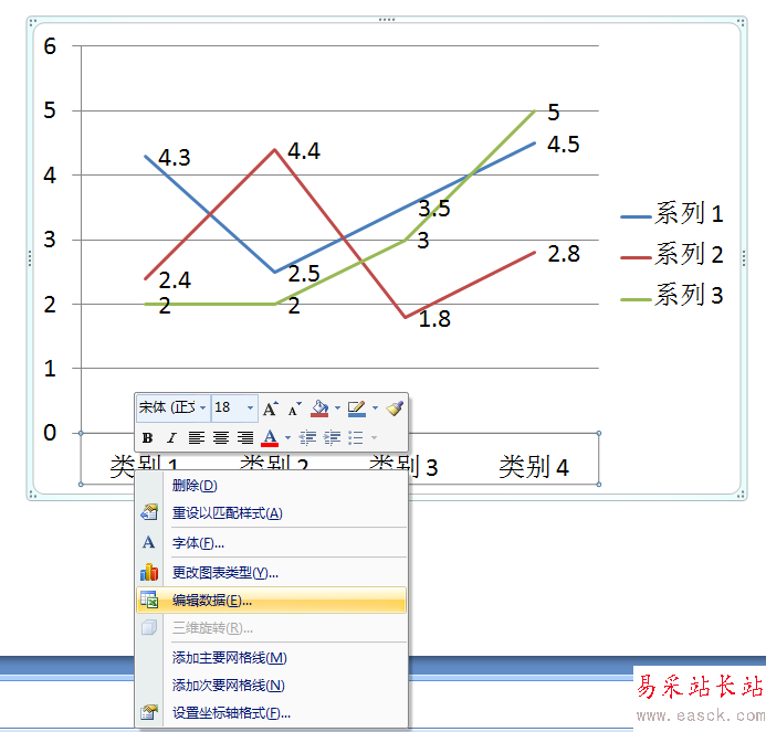 4、然后選擇折線圖,鼠標(biāo)右鍵選擇編輯數(shù)據(jù)。