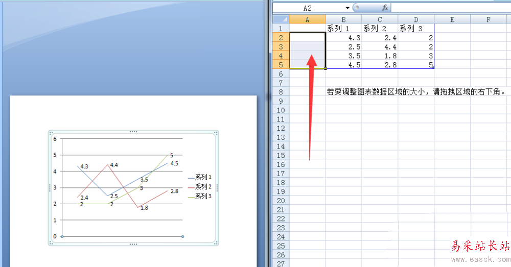 5、操作以后會(huì)打開EXCEL表格數(shù)據(jù),把橫坐標(biāo)對(duì)應(yīng)的類別刪除。