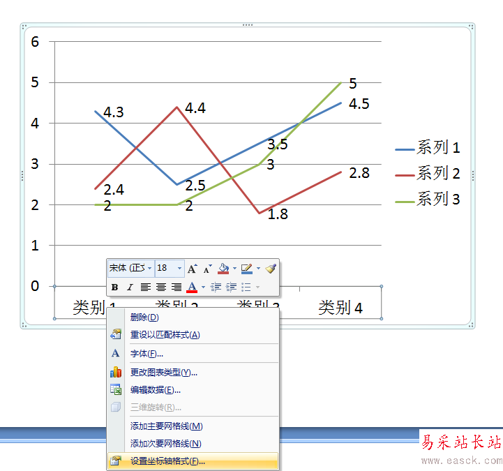 2、選中橫坐標(biāo),鼠標(biāo)右鍵選擇設(shè)置坐標(biāo)軸格式。