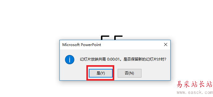 5、進行排練直到最后一張,會彈出提示對話框來提示你是否保留新的幻燈片計時,點擊【是】。這樣就保留了每一張幻燈片停留時間,在下次演講時就會自動切換下一張幻燈片。