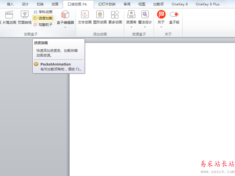 1、首先啟動ppt2010,執行口袋動畫-進度加載命令。