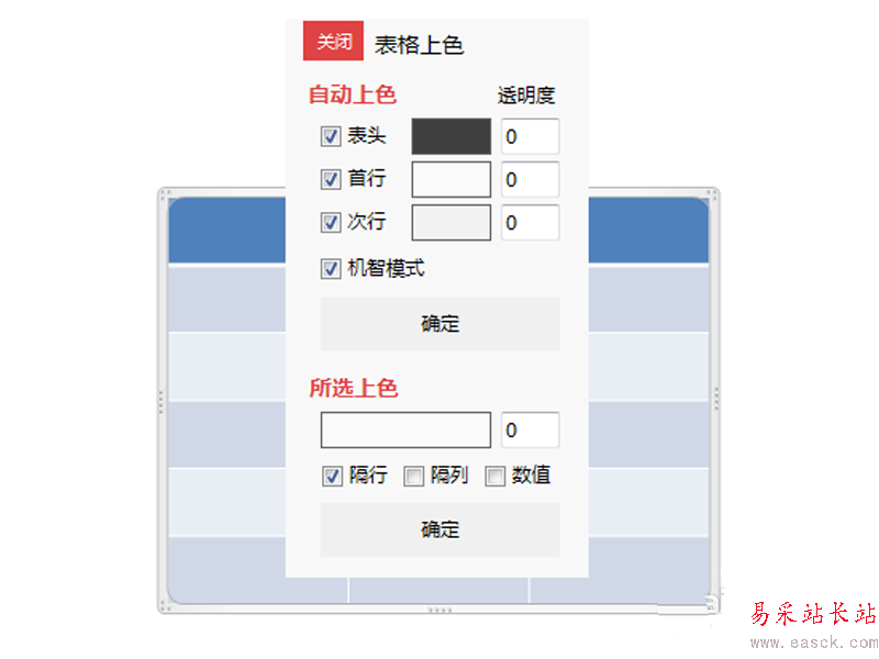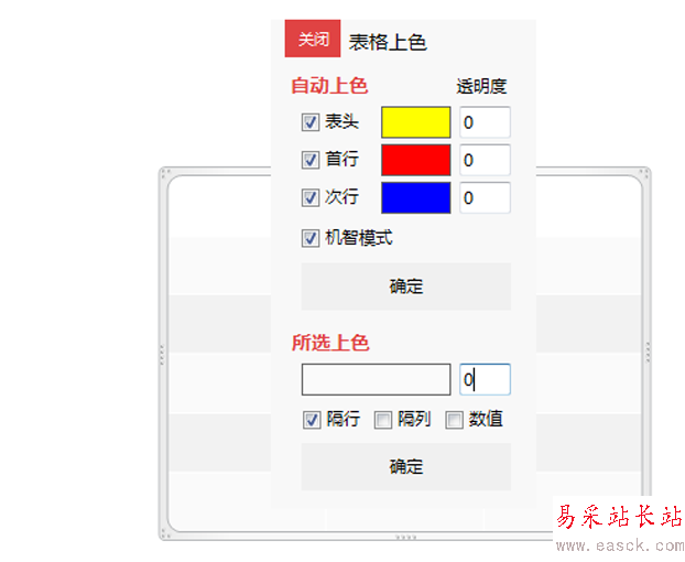 5、采用同樣的方法依次勾選首行、次行,并設置相應的顏色,分別設置為紅色和藍色。