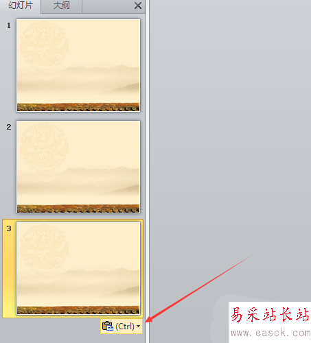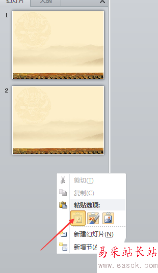 7、然后在第一張幻燈片下方右鍵粘貼即可。