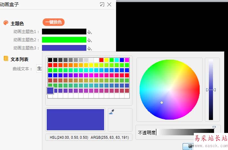 4、依次設置動畫主題色1-3分別為黑色、黃色和藍色,查看效果。