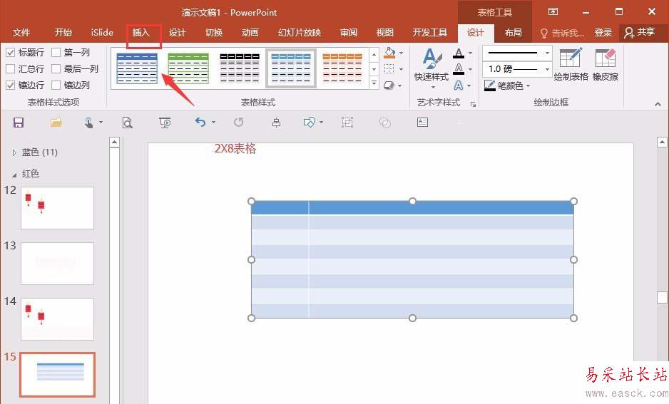 1、插入矩形?插入文本?這些其實都不需要,當然也可以,不過后續的制作就比較麻煩,所以直接先插入一個表格,2X8。