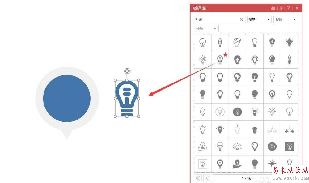 5、利用iSlide【圖標庫】下載一個適合的圖標,修改顏色為白色,放置到圓形中央