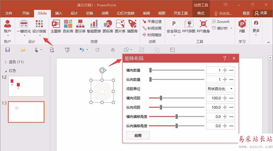 4、還是利用islide插件,現(xiàn)在是需要用到矩陣布局了,這個可以在插件的設(shè)計排版中找到,然后就是一個參數(shù)的設(shè)置了。