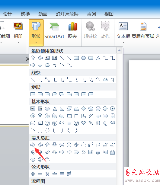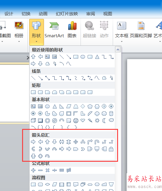 3、如圖,在彈出的下拉列表中找到箭頭總匯