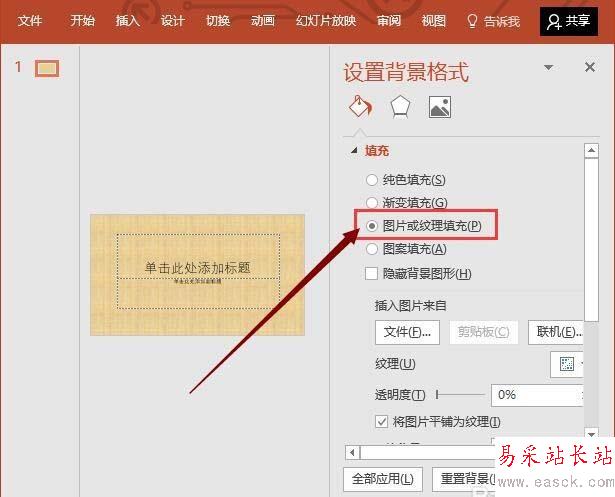 2、接著我們設置背景格式,以圖中為例,點擊。