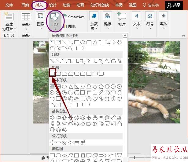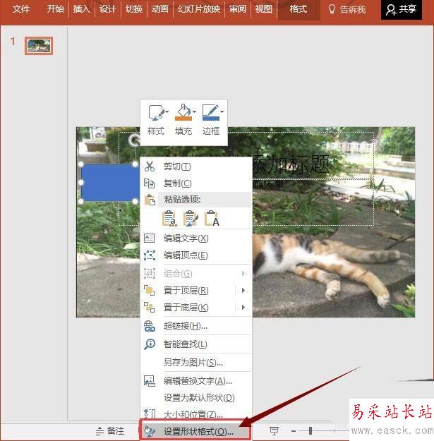 5、在矩形上右擊,選擇“設置形狀格式”。