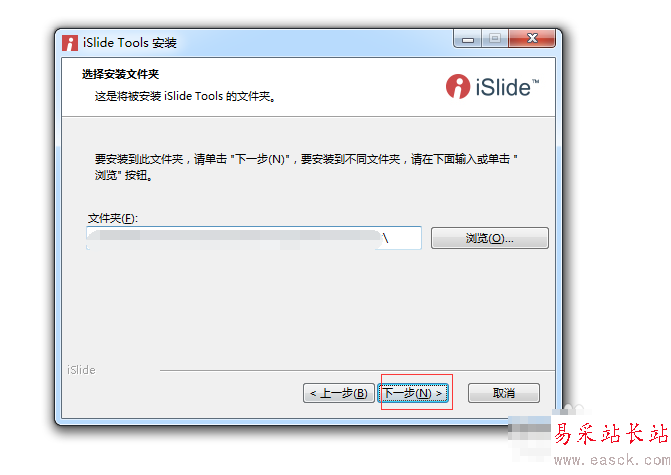 6、然后選擇安裝路徑,點擊下一步,進入下一安裝界面,然后點擊安裝。就進入了islide的安裝。
