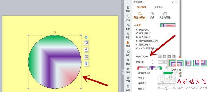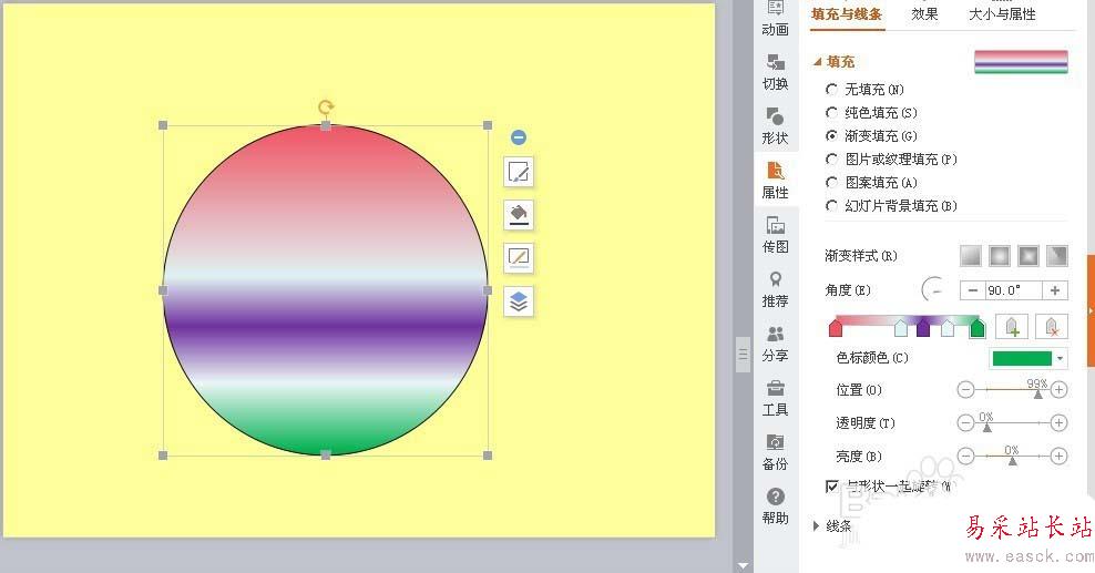 以上就是ppt中制作漸變色圖案的教程,希望大家喜歡,請繼續關注錯新站長站。