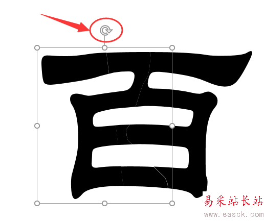 8、鼠標點擊組合好的【百】字左半邊,控制出現(xiàn)的旋轉按鈕進行文字旋轉,最后稍微調整一下就可以了