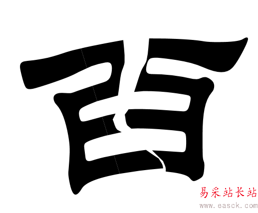 6、把拆分好的【百】字放大,把【百】字多余的部分刪掉