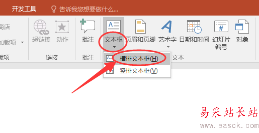 1、打開PPT,選擇【插入】選項卡,找到【文本框】,點擊【橫排文本框】