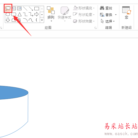 4、選擇橢圓選項我們繪制出一個橢圓作為蛋糕的上面,如圖所示: