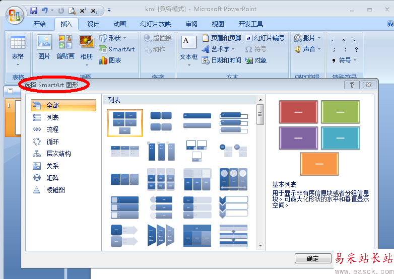 3、接下來會彈出選擇SmartArt圖形的對話框(如圖);