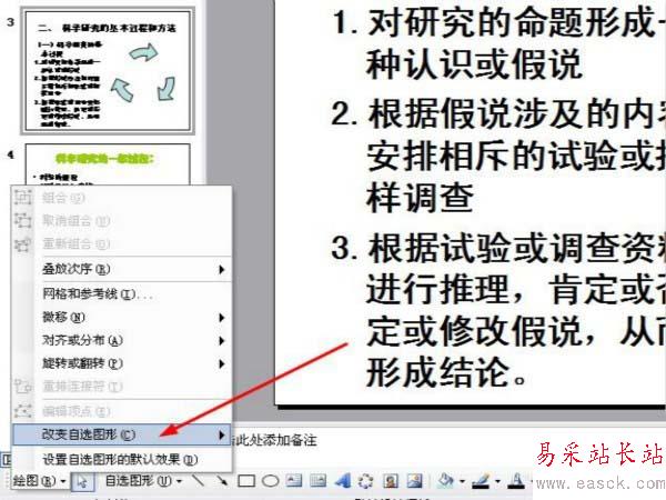 5、單擊繪圖工具欄中的“改變自選圖形”。