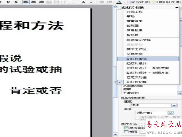 1、單擊如圖所示中改為“幻燈片版式”命令。