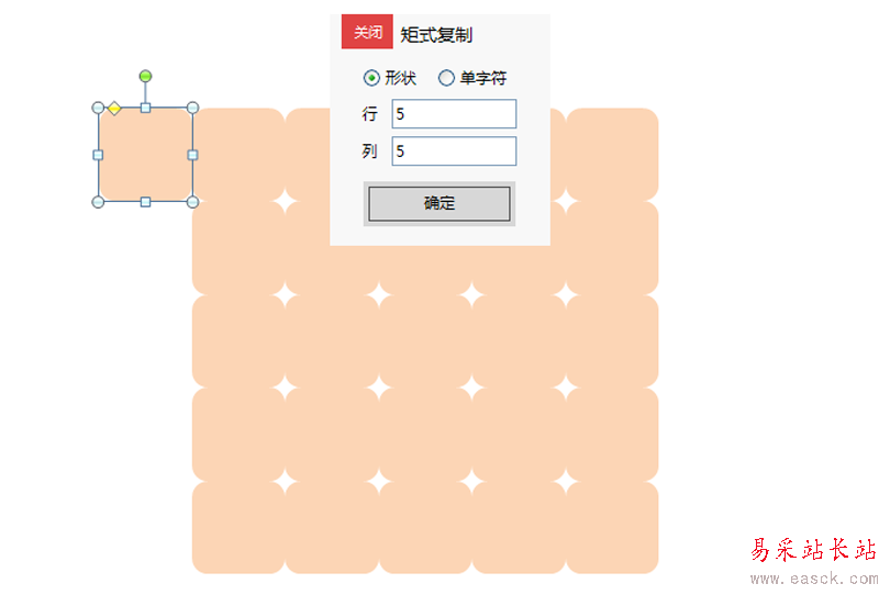 3、選擇圓角矩形,執行onekey-矩式復制命令,設置行列均為5,點擊確定按鈕。