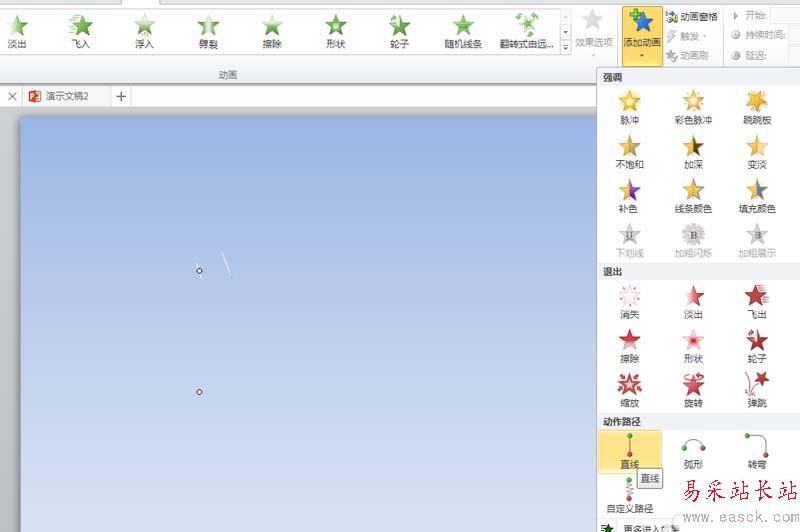 4、選擇第一條直線,執行動畫-添加動畫命令,選擇直線動畫效果。