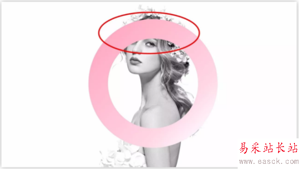3、最后,思考被形狀遮擋住的圖片,哪個部分需要露出來。我這里就確定了以下畫紅圈的圖片部位需要露出來