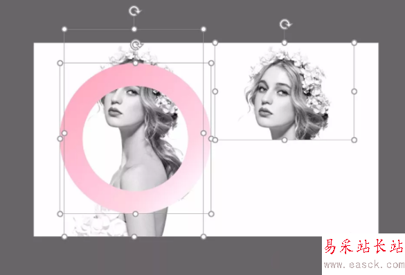 6、大功告成!其實,除了用以上介紹的用圖片遮擋的方法,也可以用形狀遮擋的方法??傊矶际窍嗤ǖ?,能實現最終效果的就是好方法!