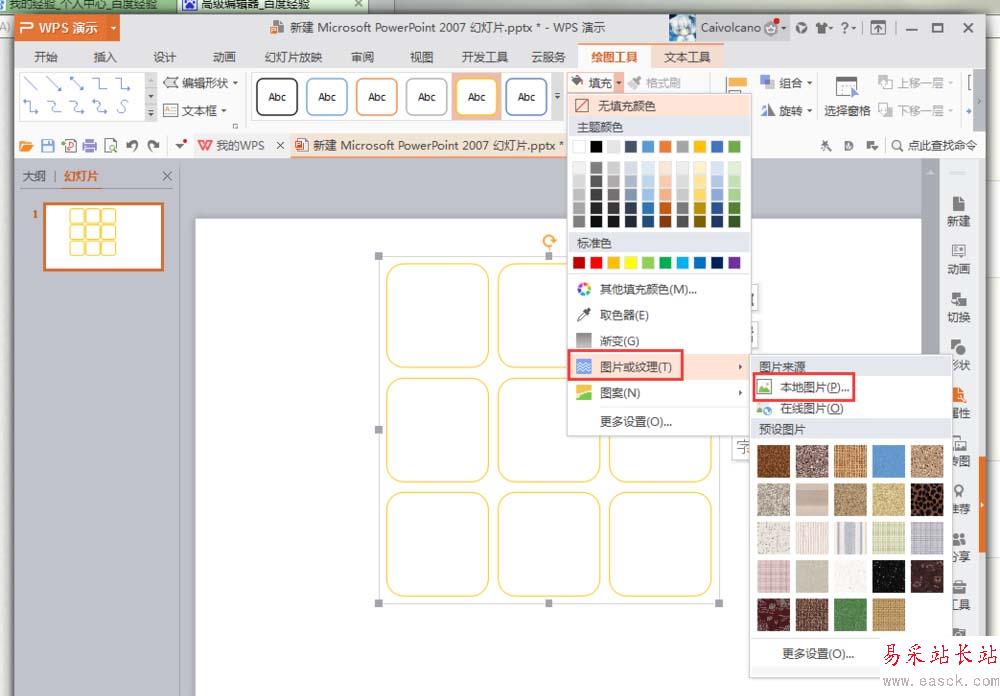 7、然后在繪圖工具中選擇填充,下面選擇本地圖片填充。