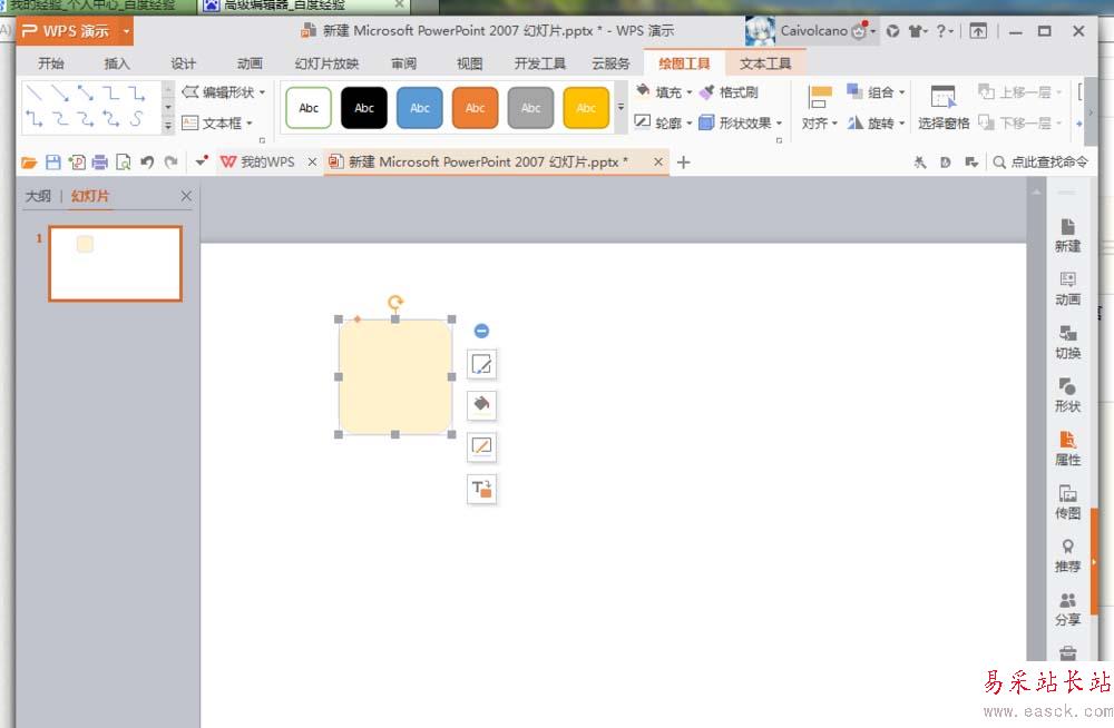 2、我們這里就選擇比較簡單的圓角矩形來做一個九宮格。根據需要設置大小、顏色等等。