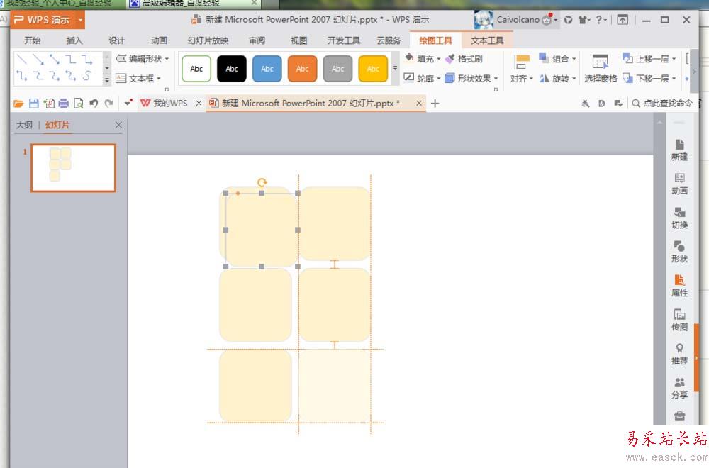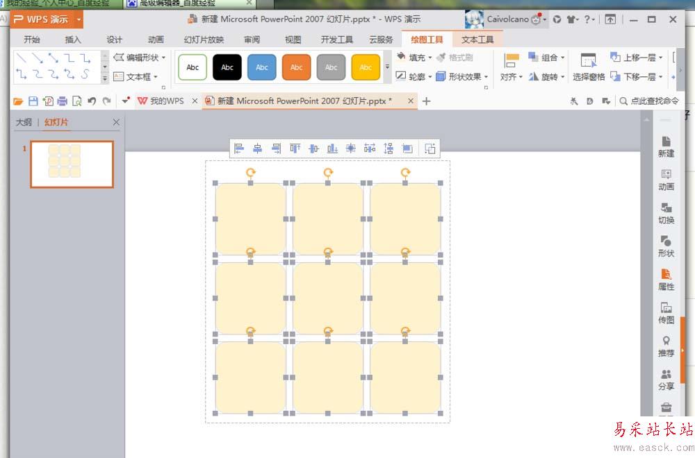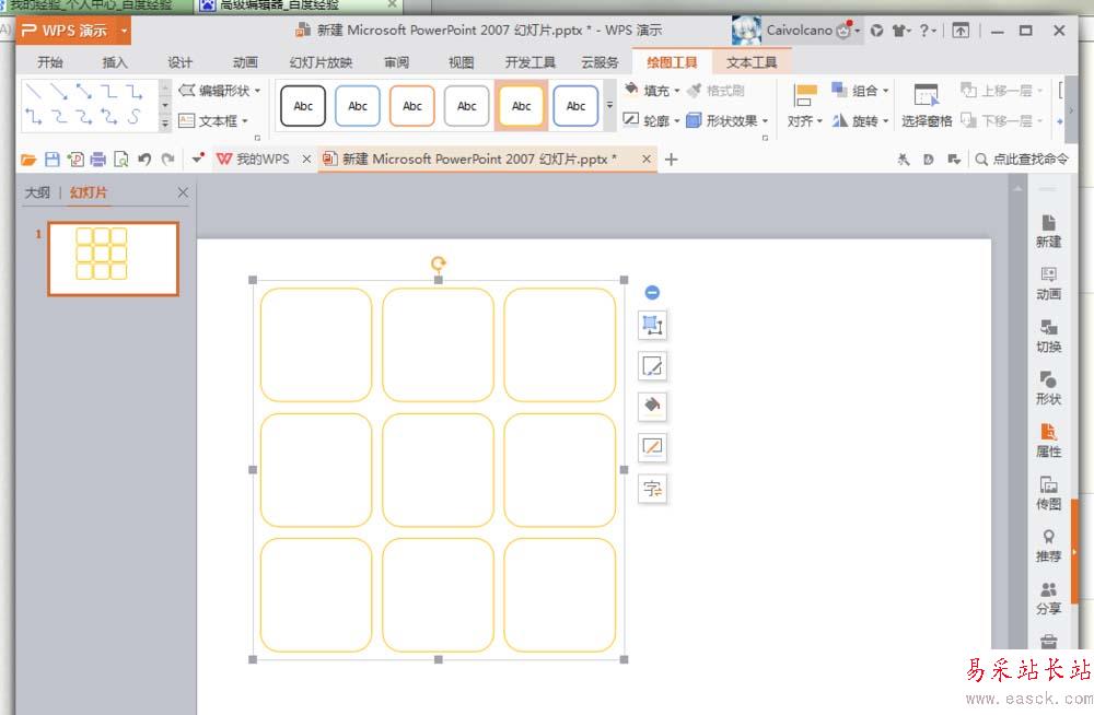 6、這樣九個圓角矩形就變成一個大的整體了。現在也可以改形狀、顏色框線等等。