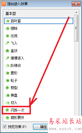 4、在右側窗口中打開【添加效果】---【進入】,選擇【閃爍一次】動畫。