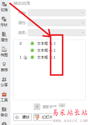 5、接下來調整動畫順序和開始時間,把動畫順序調為3,2,1的順序,如下圖:
