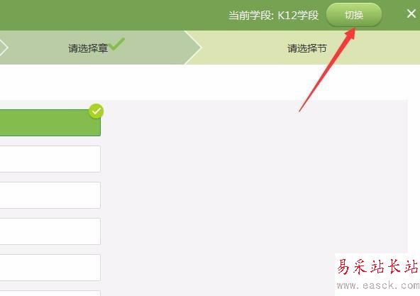 2、一般要設(shè)置的內(nèi)容由學(xué)段,年級(jí),學(xué)科,版本,單元章節(jié)等,如果原來(lái)備過(guò)課,默認(rèn)的保留原來(lái)的設(shè)置,通過(guò)單擊前進(jìn)、后退箭頭可以進(jìn)入相應(yīng)的章節(jié)。如果現(xiàn)在要改變課程,單擊切換按鈕即可。