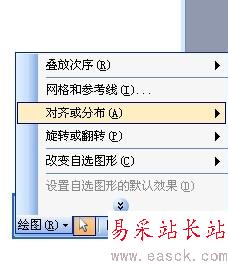 2、點擊”繪制“在彈出的菜單中選擇”對齊或分布“命令。