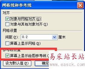 2、在“網格和參考線”窗口選中“屏幕上顯示繪圖參考線”復選框