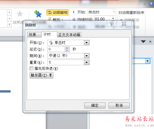 4、點擊動畫效果選項,然后設置中速,重復5。