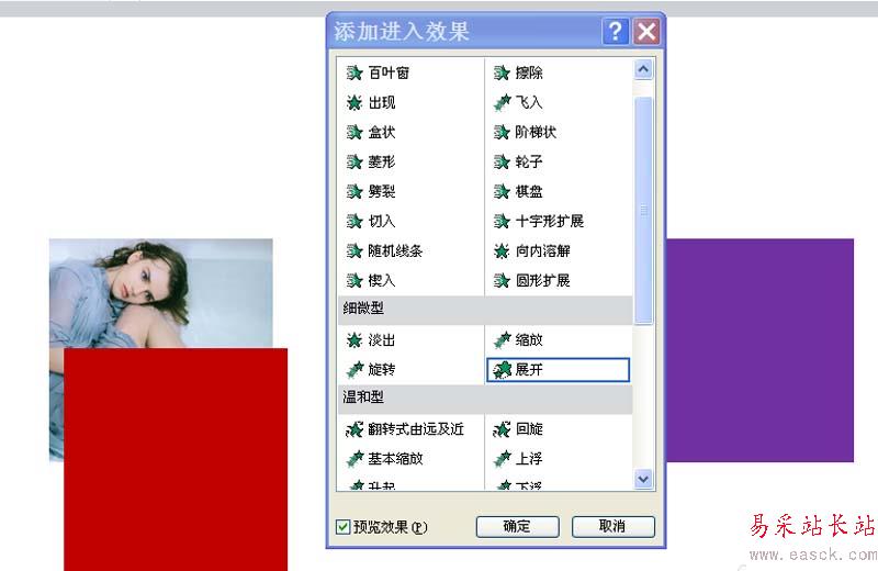 7、接著選擇下面的圖片,執(zhí)行動(dòng)畫-添加動(dòng)畫命令,添加進(jìn)入里的展開效果,持續(xù)時(shí)間為0.25.